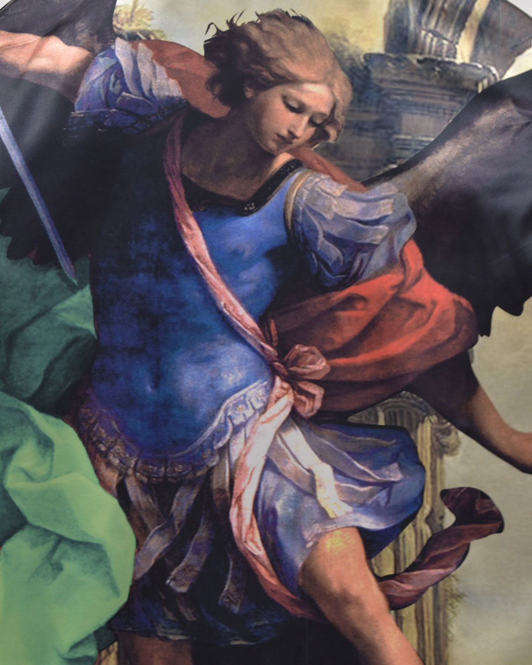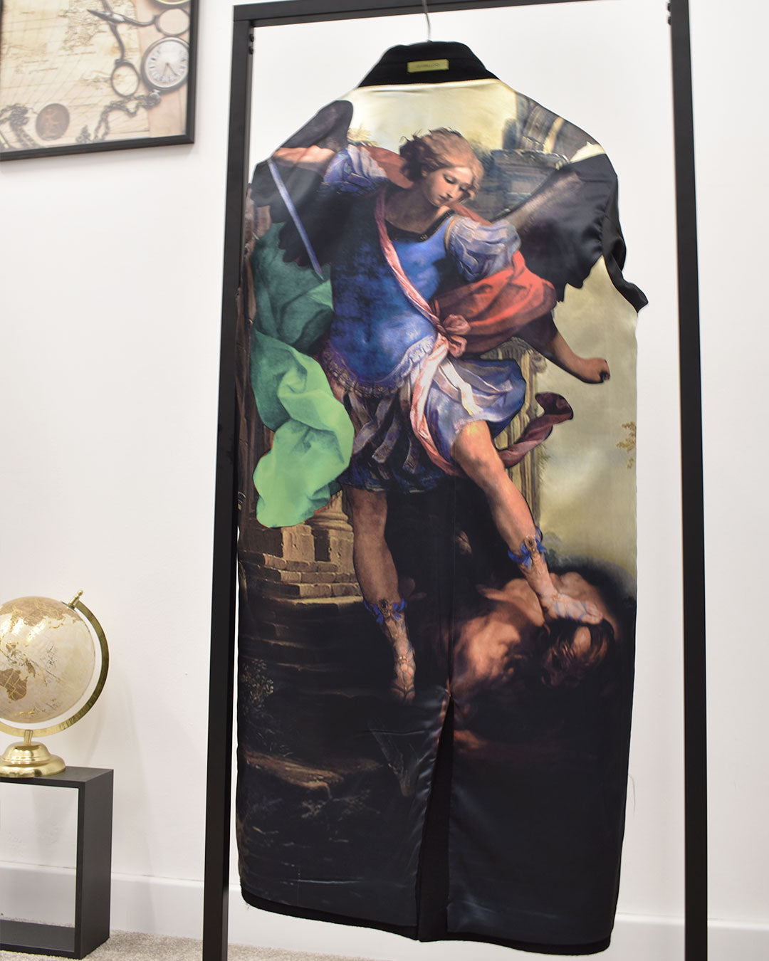CAPPOTTO MODELLO OVERSIZE CON STAMPA INTERNA DI SAN MICHELE.