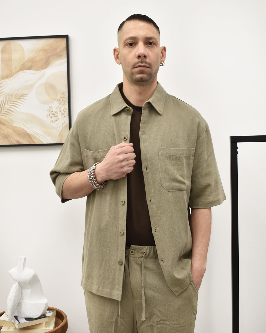 CAMICIONE MANICA CORTA OVERSIZE ABBINATO AL SUO PANTALONE