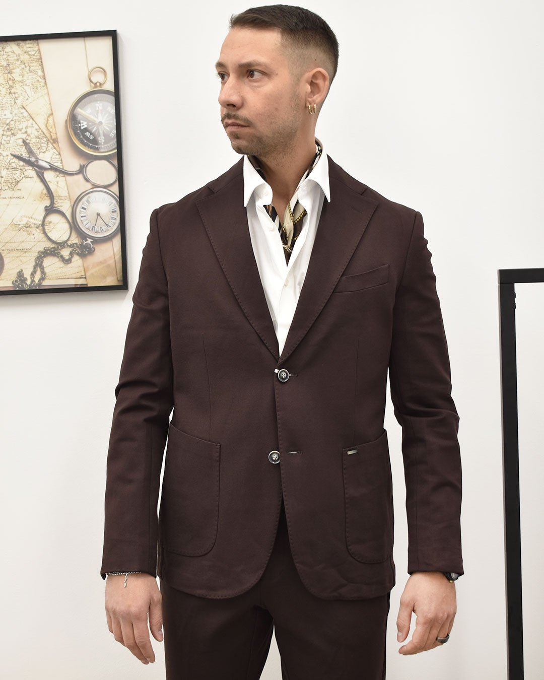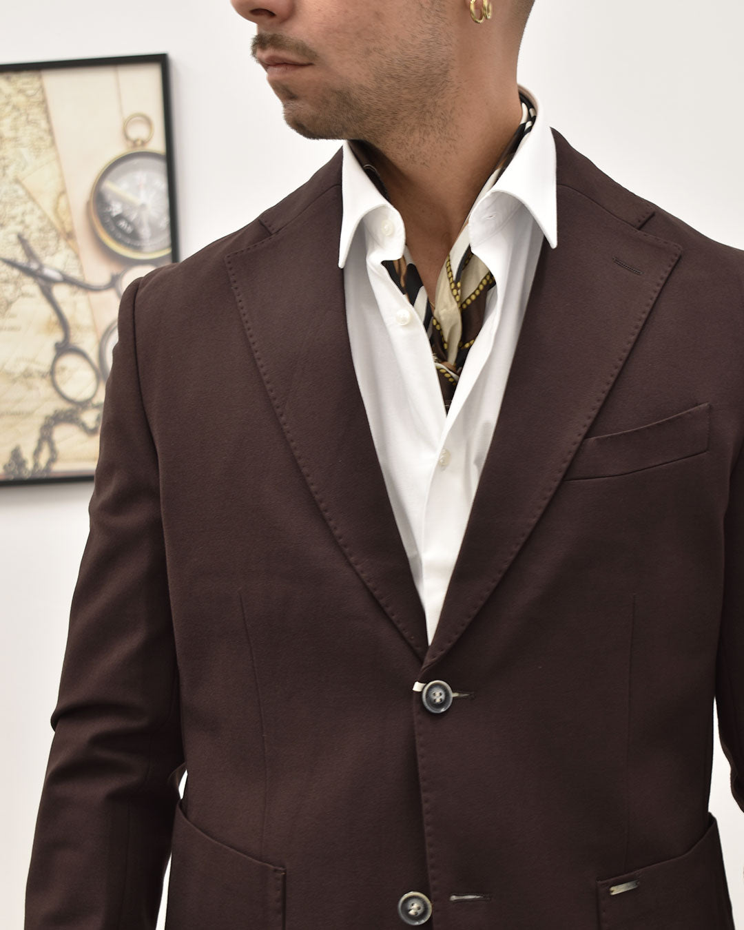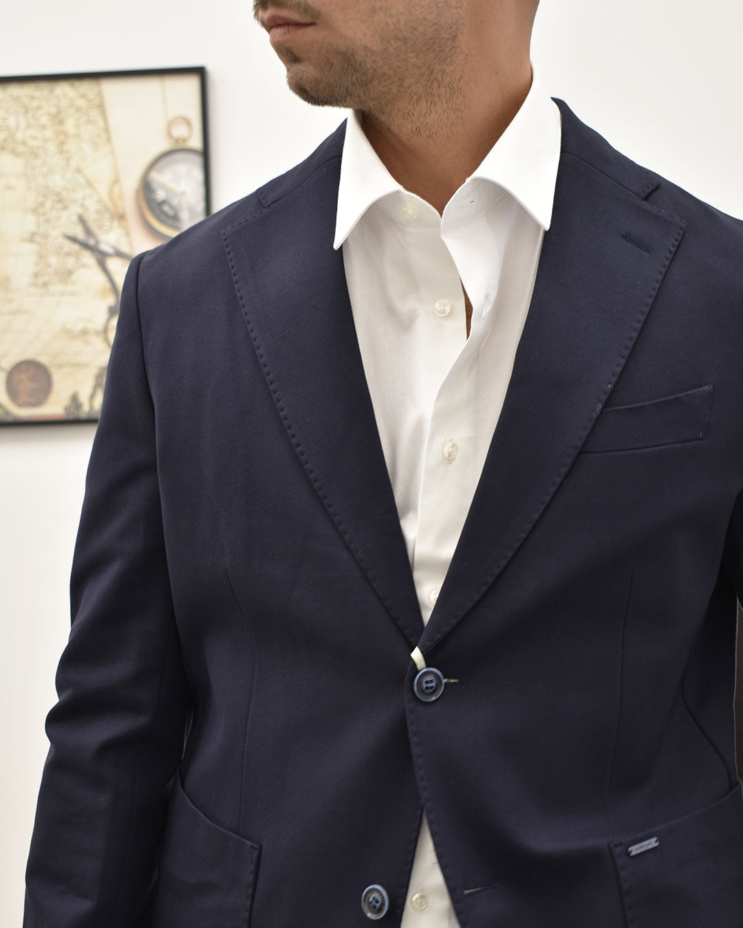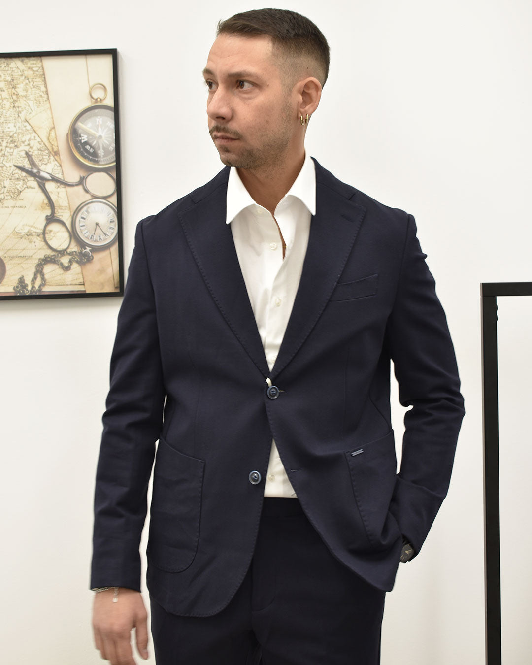 GIACCA MONOPETTO IN TESSUTO PUNTO MILANO ABBINATO AL SUO PANTALONE.