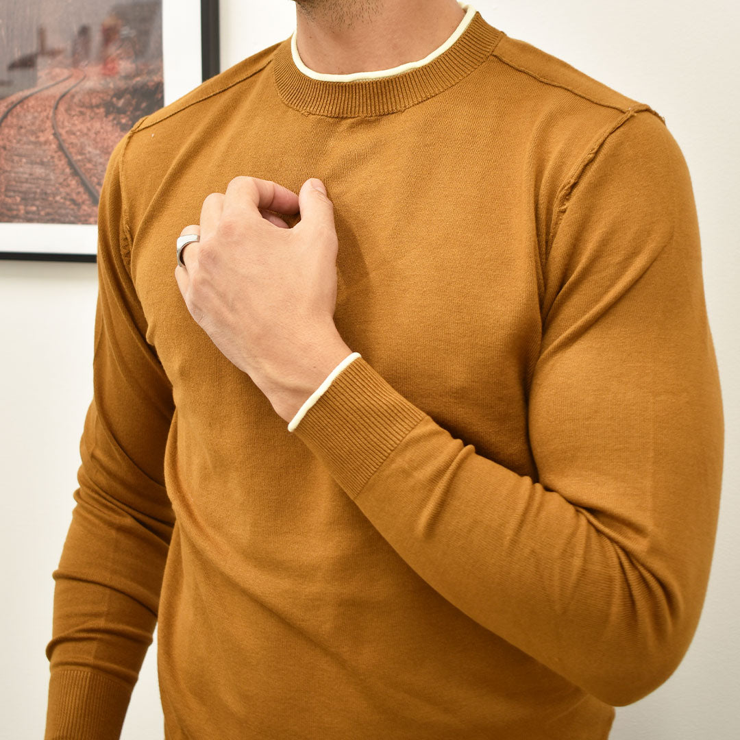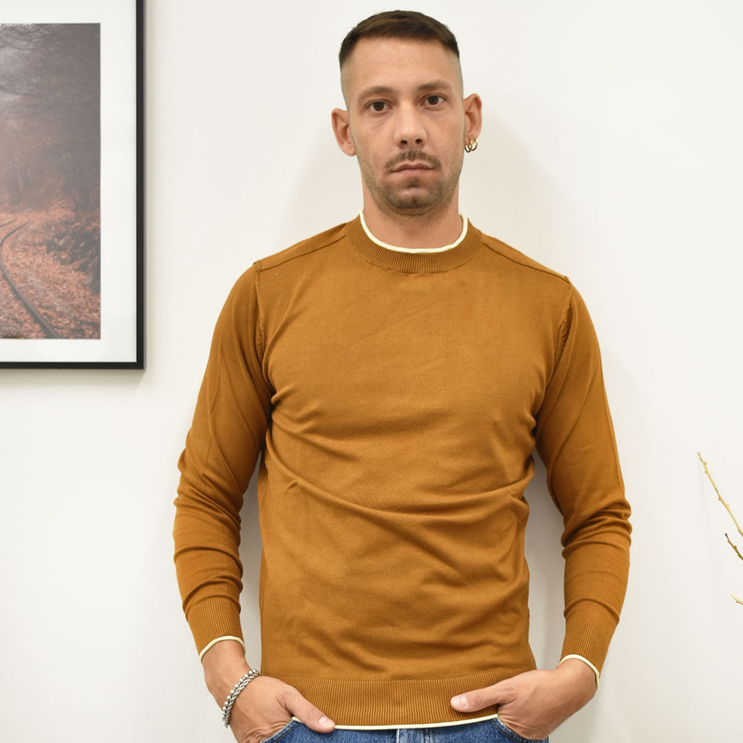 MAGLIA GIROCOLLO CON CUCITURE IN RILIEVO E CONTRASTO SUL COLLO.