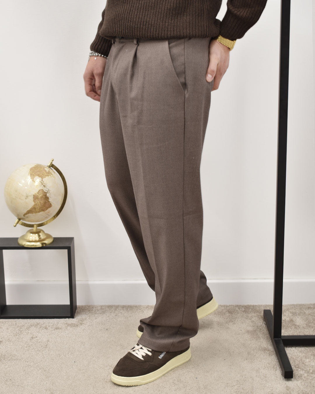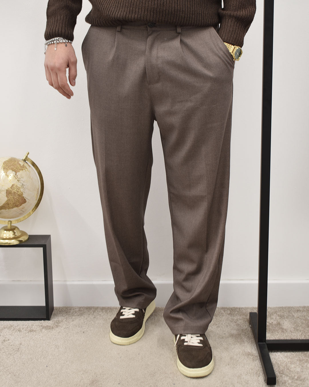 PANTALONE TASCA A FILO IN POLIVISCOSA, CON PENCE, FONDO LARGO ED ELASTICO SUL RETRO.