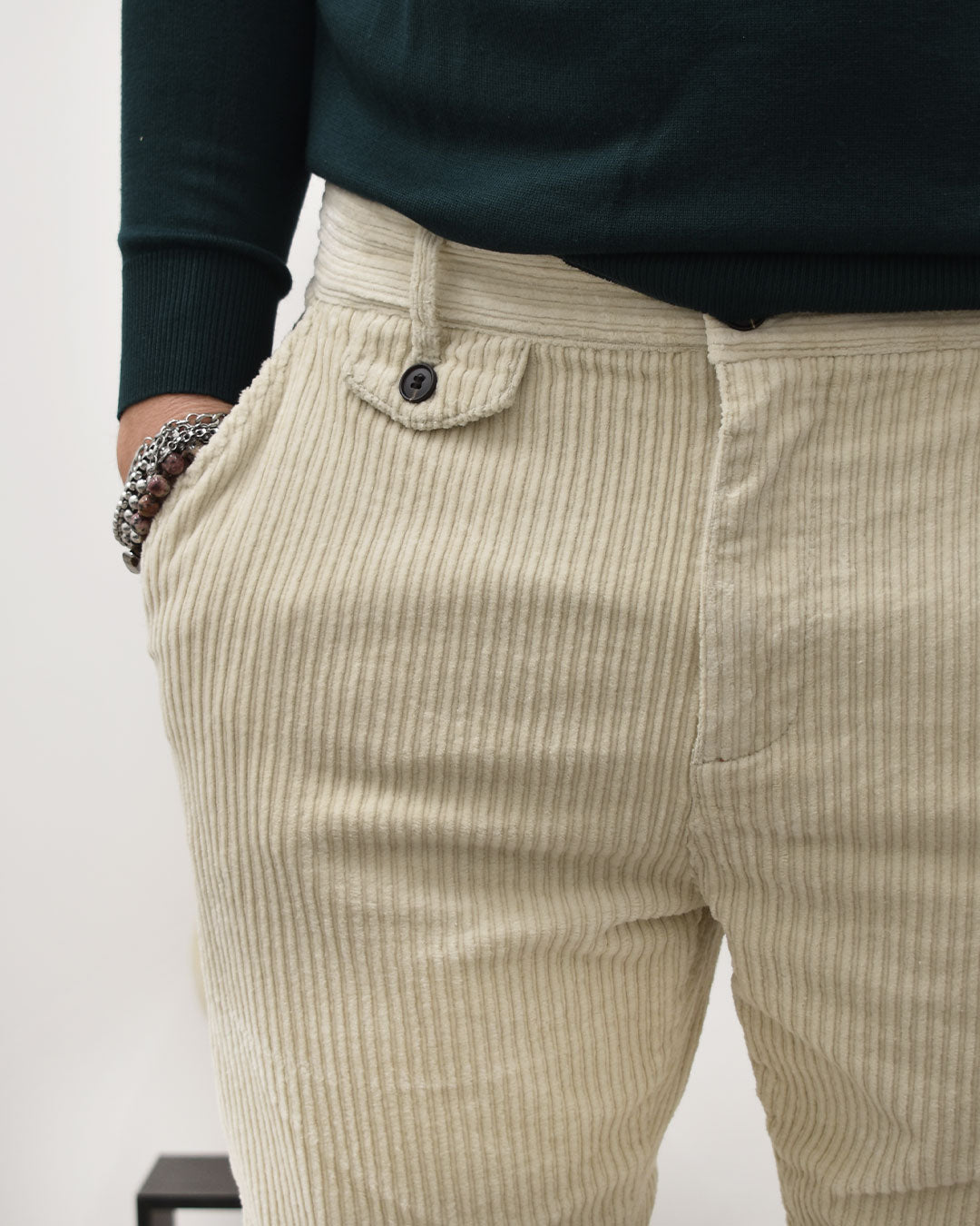 PANTALONE CON TASCONI IN VELLUTO A COSTE LARGHE