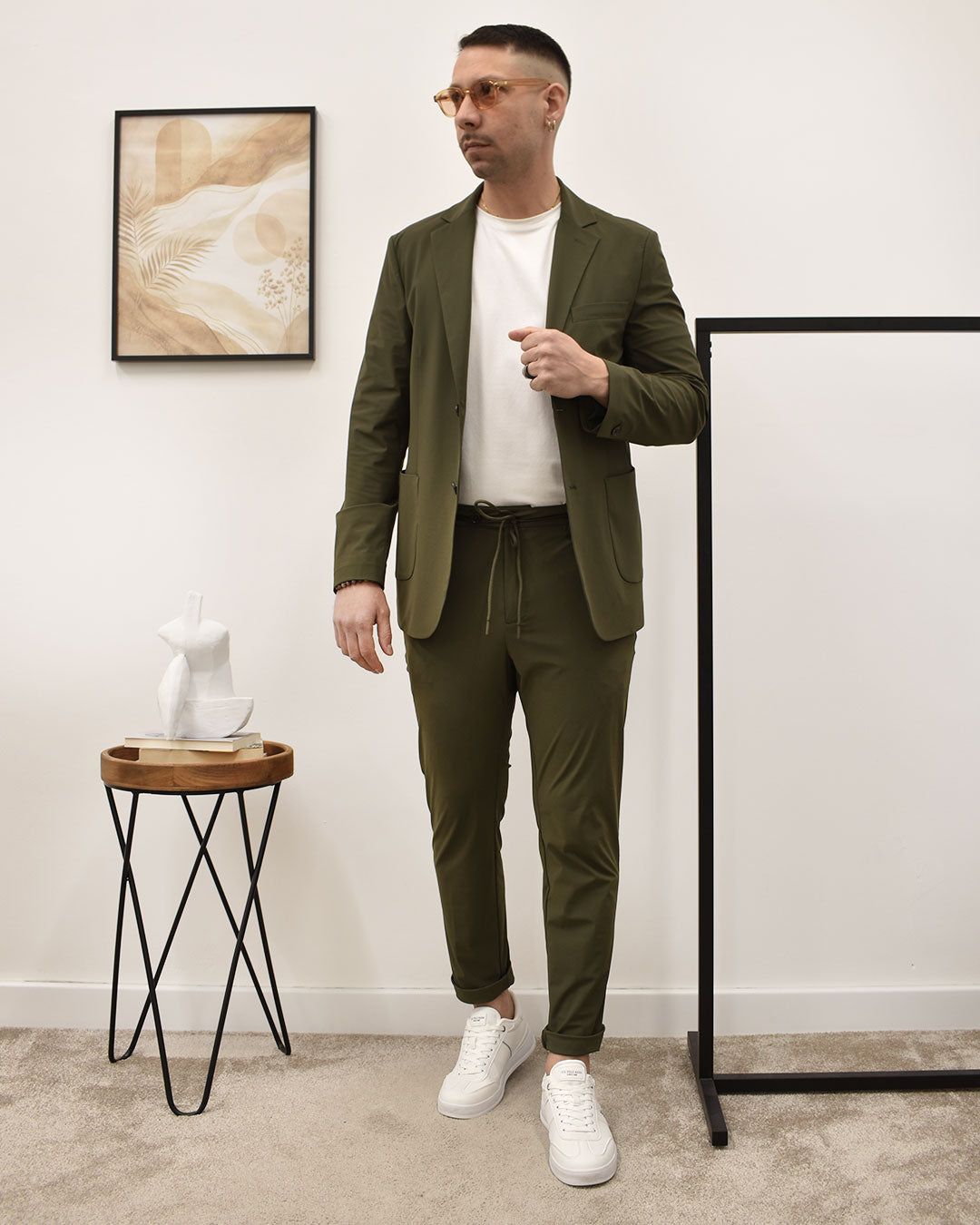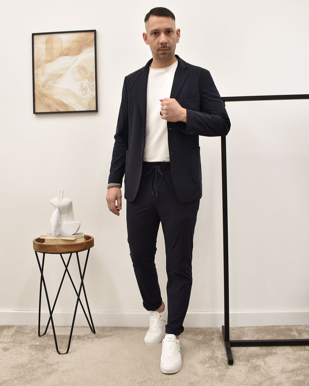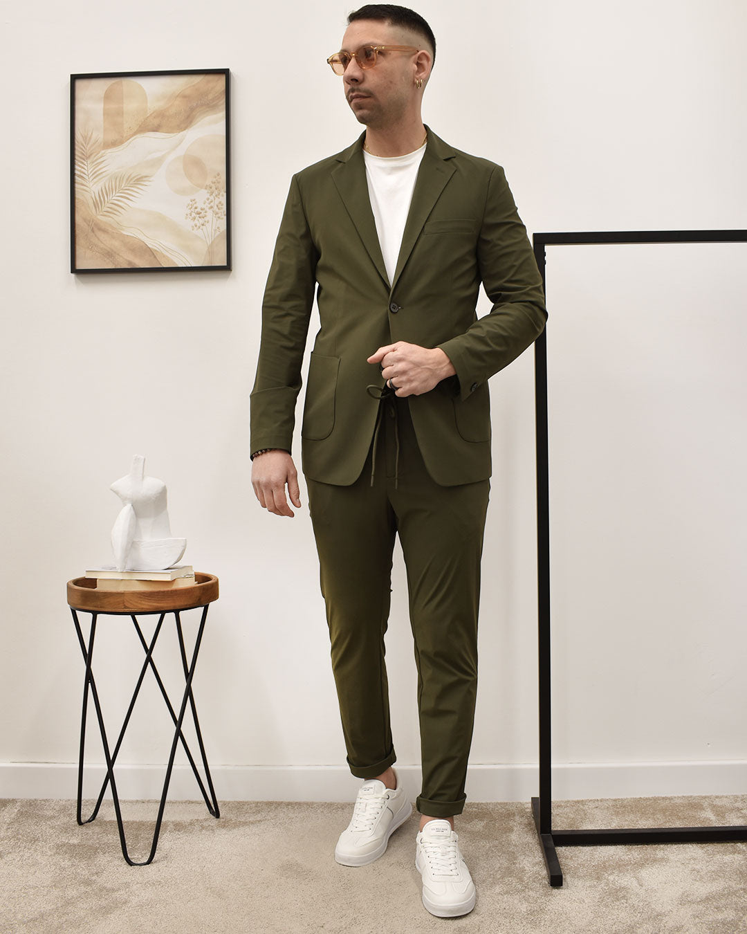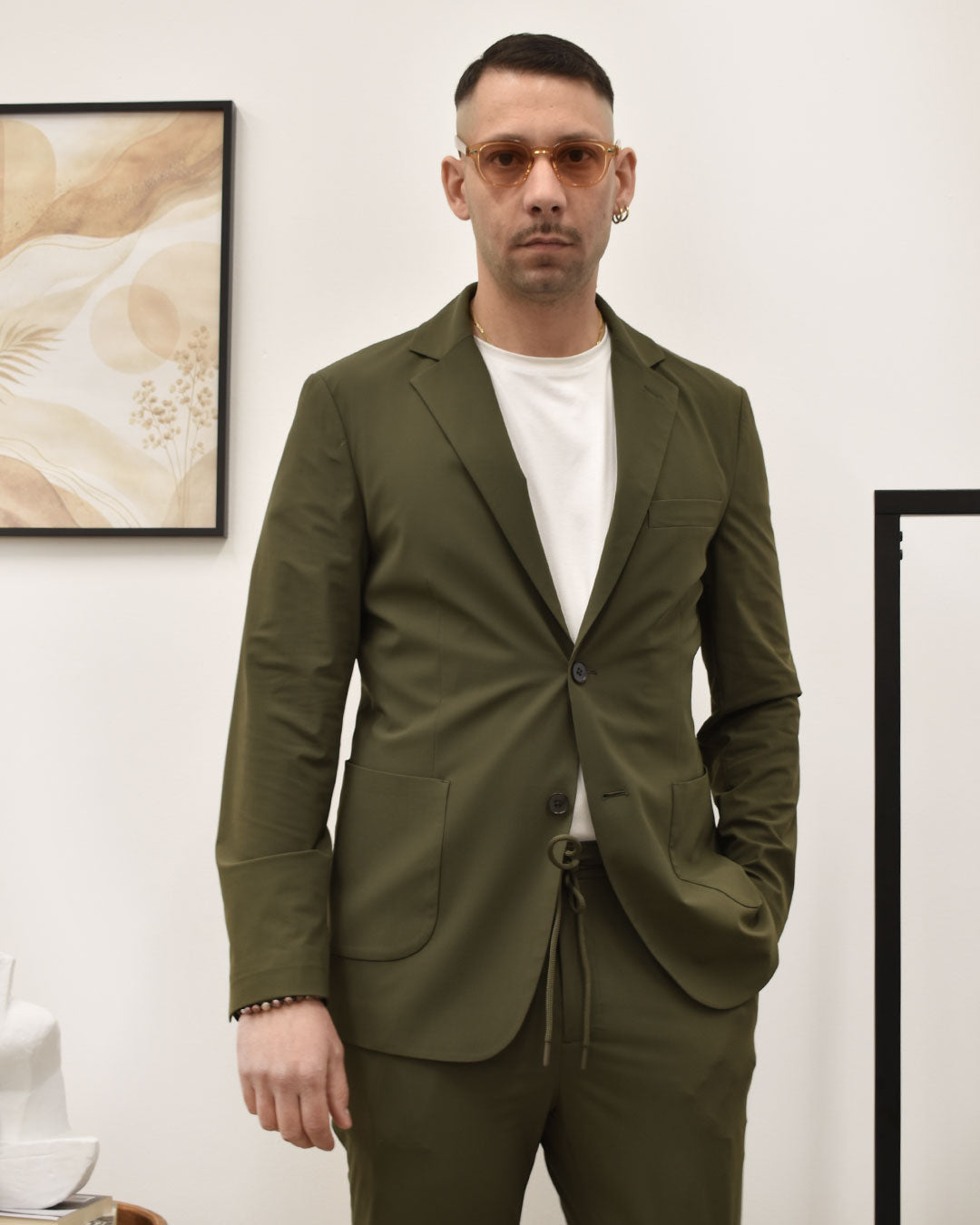 ABITO MONOPETTO IN TESSUTO TECNICO CON PANTALONE C/ LACCETTI - SACCHETTO VIAGGIO INCLUSO.